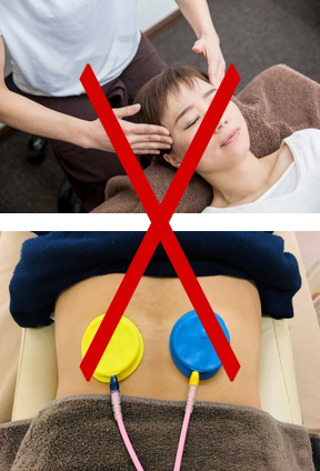 私の治療の考え方ではマッサージや電気治療は根本的な問題の解決にはならないと考えているため当院では行っておりません。