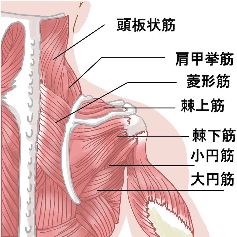 肩のインナーマッスルである回旋筋腱板という4つの筋肉(棘上筋、棘下筋、小円筋、肩甲下筋)を損傷または断裂した場合に診断されます。